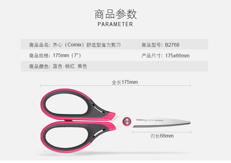 • 商品名稱:齊心(COMIX)175mm舒適省力辦公學(xué)生安全剪刀 顏色隨機(jī) 辦公文具B2768