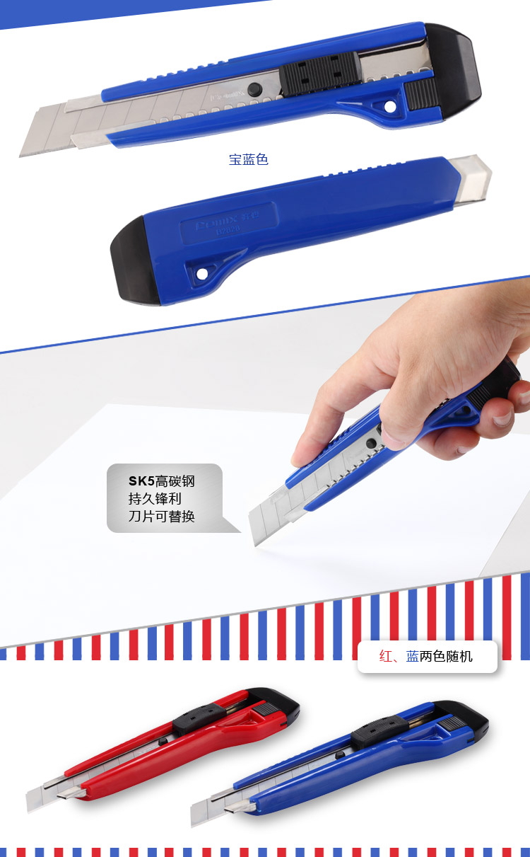 • 齊心(COMIX)大號(hào)防滑自鎖美工刀 壁紙刀 18mm 顏色隨機(jī) 辦公文具B2828