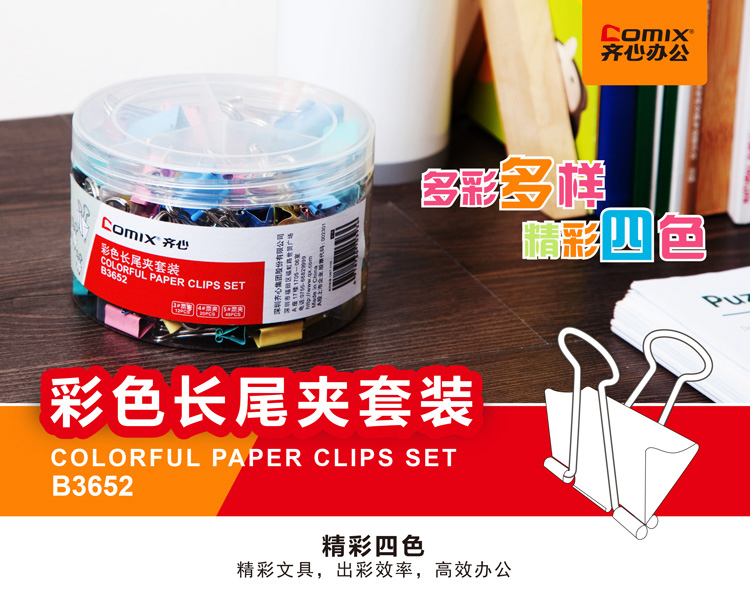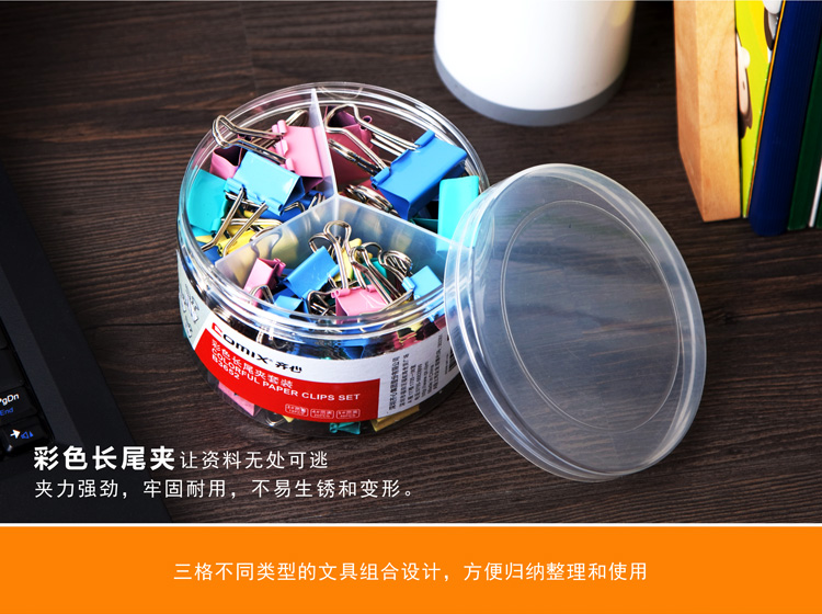 • 商品名稱:齊心(Comix) 80只多規(guī)格辦公彩色票夾(32mm12只+25mm20只+19mm48只) B3652