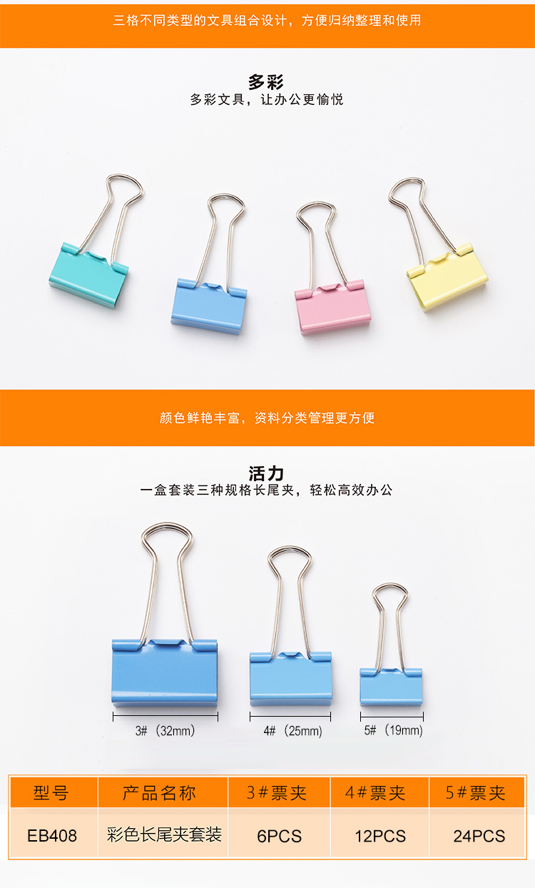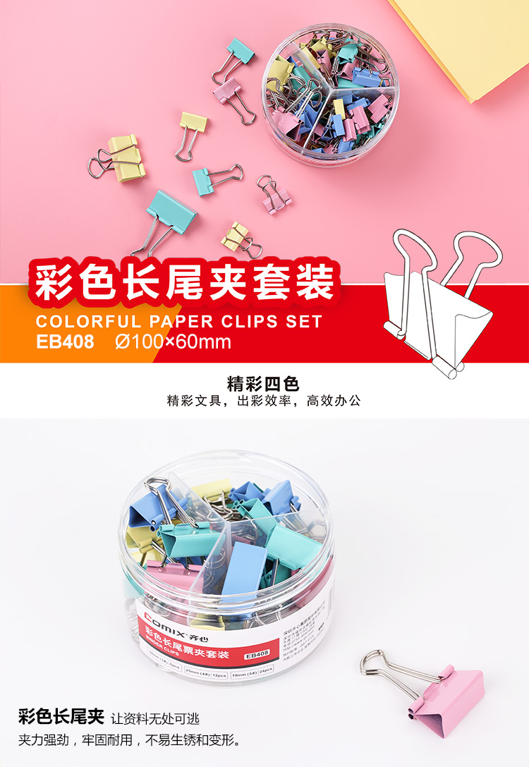 • 商品名稱:齊心(Comix) 42只多規(guī)格辦公彩色票夾(32mm6只 25mm12只 19mm24只 )EB408