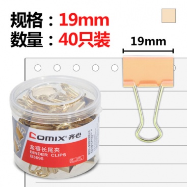 • 齊心(COMIX)40只裝19mm金色長(zhǎng)尾夾/長(zhǎng)尾票夾 辦公文具B3695