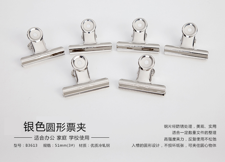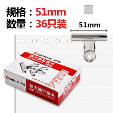 • 商品名稱:齊心(COMIX) 36只裝51mm圓形鐵票夾 金屬夾子 辦公文具B3613