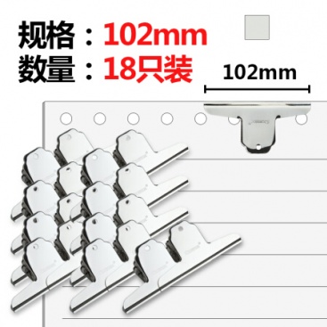 • 商品名稱:齊心(COMIX) 18只/盒102mm山形票據(jù)夾/票據(jù)夾/鐵夾子 辦公文具B3619