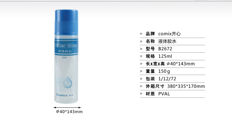 • 齊心(Comix)125ml通用型液體膠水 單支裝 辦公文具 B2672