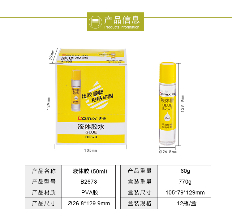 • 商品名稱:齊心(Comix)12支裝50ml實(shí)惠裝高粘性海綿頭液體膠水 辦公文具 B2673