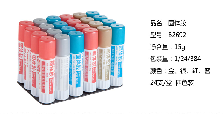 • 商品名稱(chēng):齊心(COMIX)24支裝15g PVA高粘性固體膠棒 辦公文具B2692