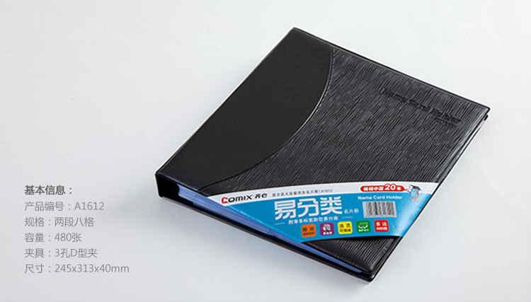 • 商品名稱:齊心(Comix) A1612 大容量商務(wù)名片冊(cè) 二段八格 480枚 黑色