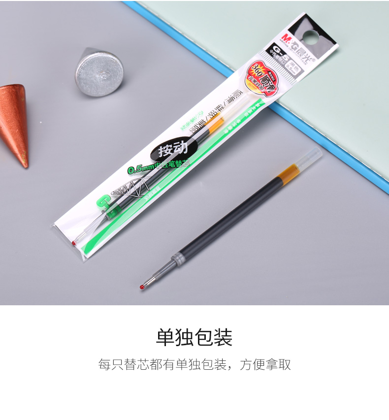 • 晨光(M&G)黑色0.5mm按動(dòng)子彈頭中性筆簽字筆水筆替芯筆芯 20支/盒G-5
