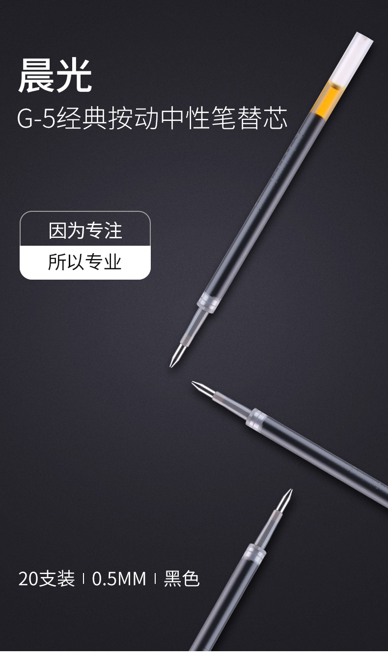 • 商品名稱:晨光(M&G)黑色0.5mm按動(dòng)子彈頭中性筆簽字筆水筆替芯筆芯 20支/盒G-5