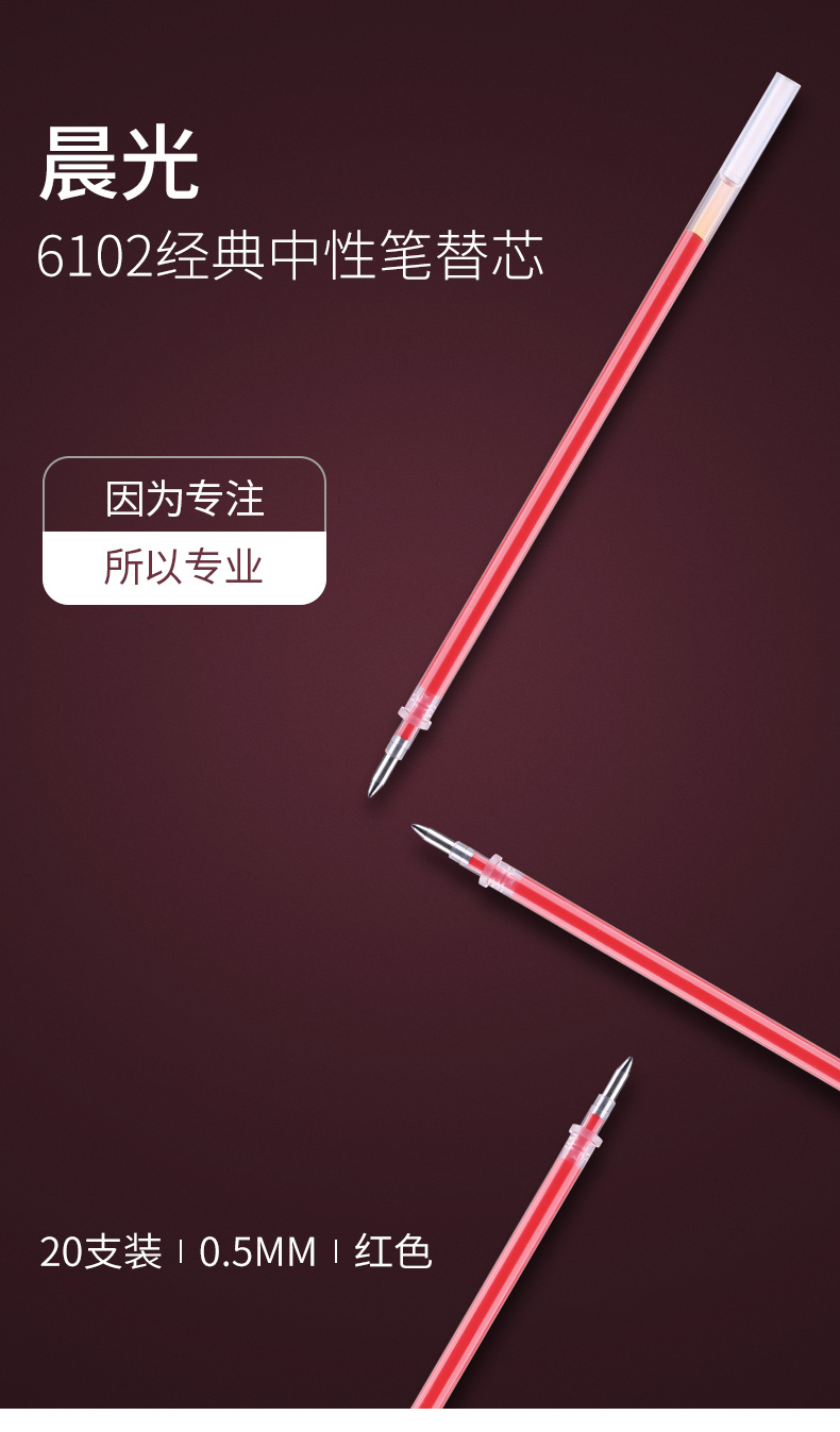 • 晨光(M&G)紅色0.5mm子彈頭中性筆簽字筆水筆替芯筆芯 20支/盒MG6102