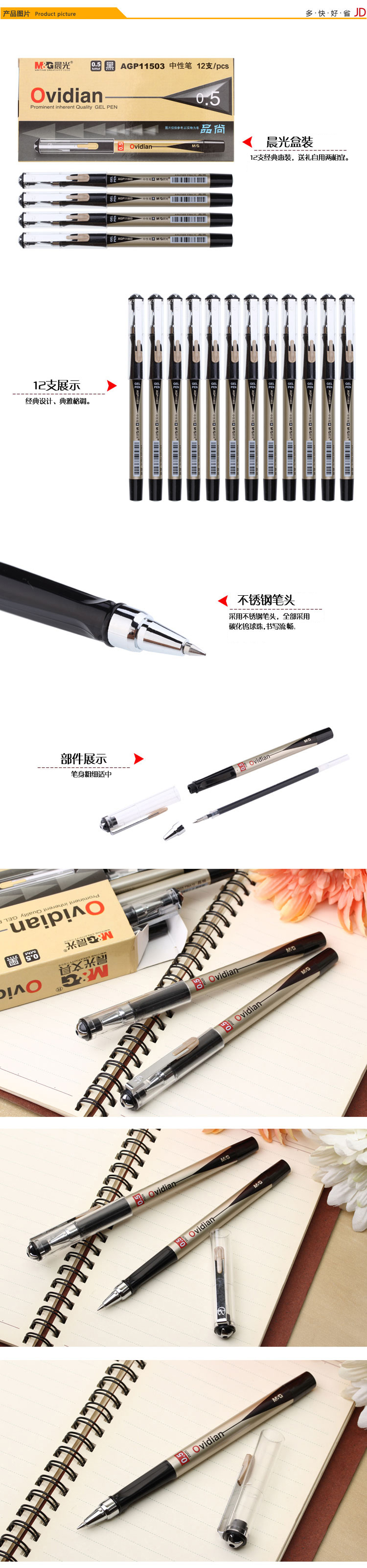 • 商品名稱:晨光(M&G)0.5mm黑色子彈頭中性筆簽字筆水筆 12支/盒AGP11503
