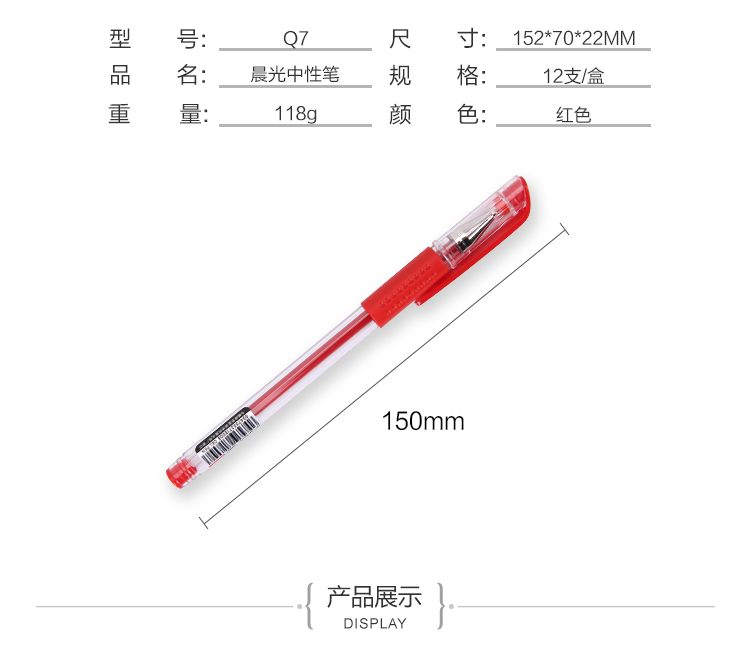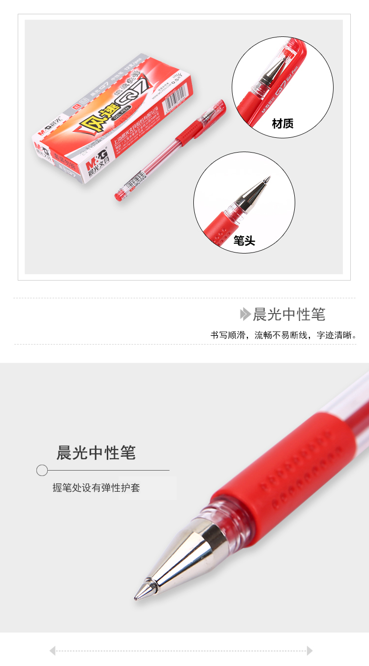 • 商品名稱:晨光(M&G)Q7紅色0.5mm經(jīng)典子彈頭中性筆簽字筆水筆 12支/盒