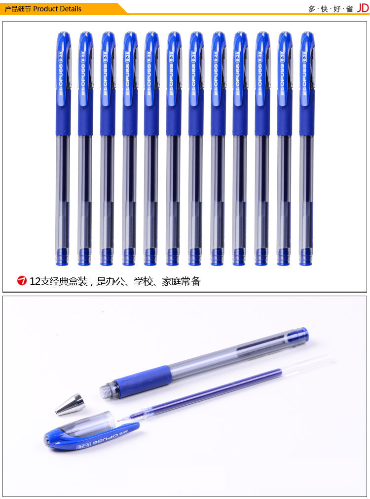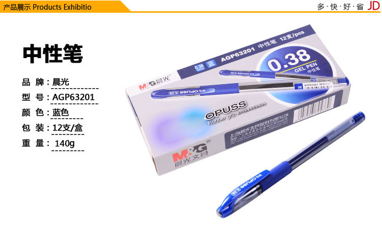 • 商品名稱:晨光(M&G)0.38mm藍色全針管中性筆簽字筆水筆 12支/盒AGP63201