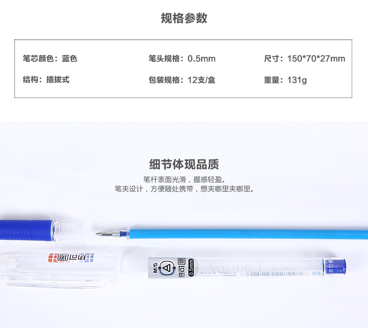 • 商品名稱:晨光(M&G)熱可擦0.5mm藍(lán)色學(xué)生中性筆子彈中性筆頭簽字筆水筆 12支/盒AKP61115
