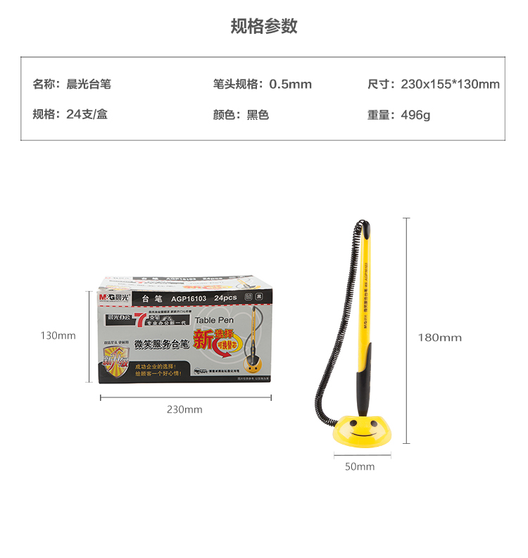 • 商品名稱:晨光(M&G)微笑0.5mm黑色臺(tái)筆 可黏貼簽字筆中性筆 24支/盒AGP16103