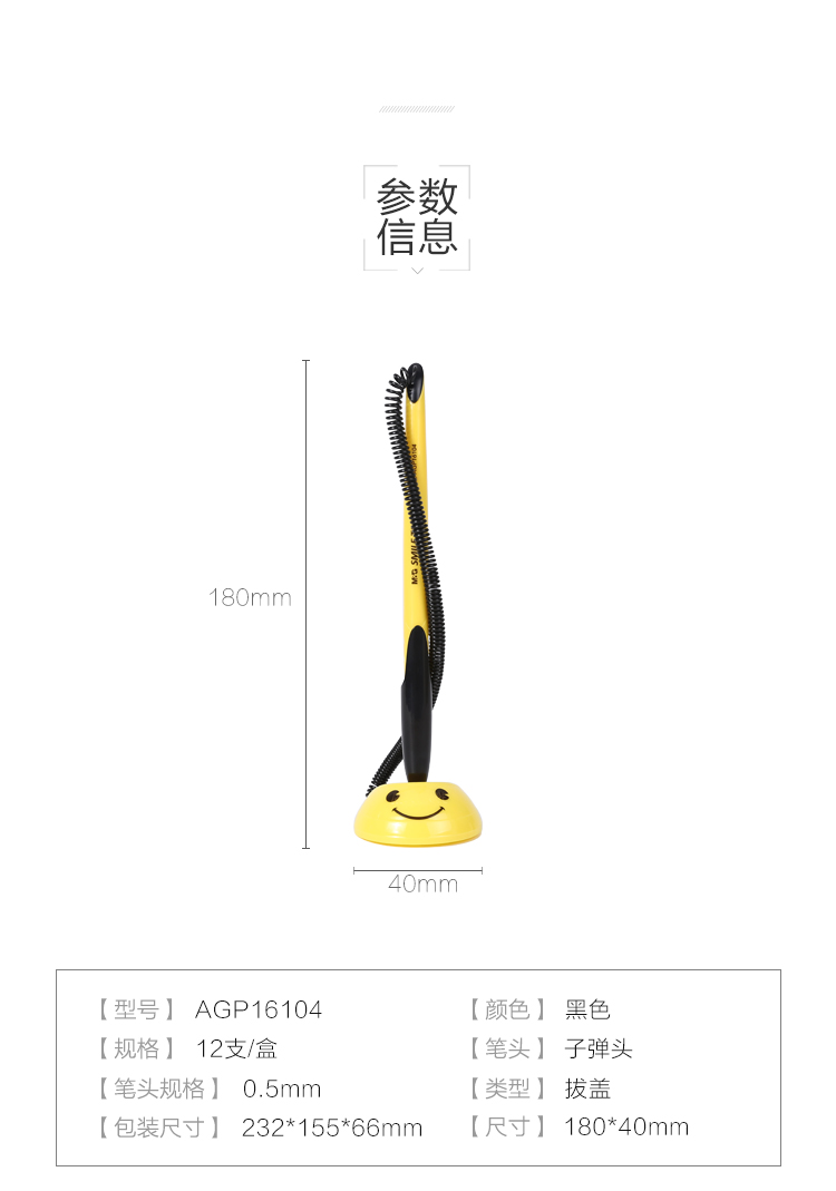 • 商品名稱:晨光(M&G)微笑0.5mm黑色臺筆 可黏貼簽字筆中性筆 12支/盒AGP16104