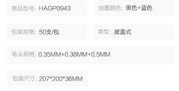 • 商品名稱:晨光(M&G)黑+藍全針管中性筆簽字筆水筆套裝 50支/盒(內(nèi)含3種規(guī)格筆頭)HAGP0943