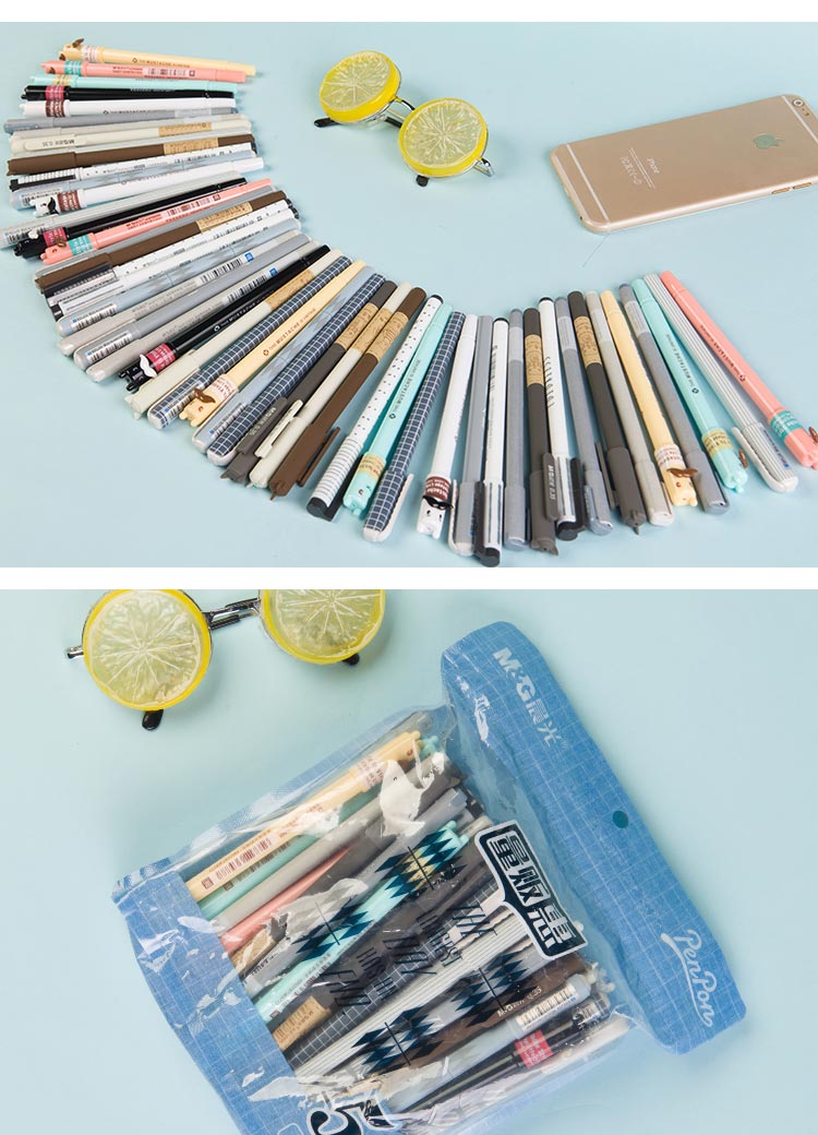 • 晨光(M&G)黑+藍全針管中性筆簽字筆水筆套裝 50支/盒(內(nèi)含3種規(guī)格筆頭)HAGP0943