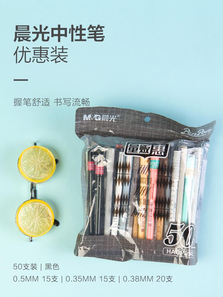 • 晨光(M&G)黑色全針管中性筆簽字筆水筆套裝 50支/盒(內(nèi)含3種規(guī)格筆頭)HAGP0942