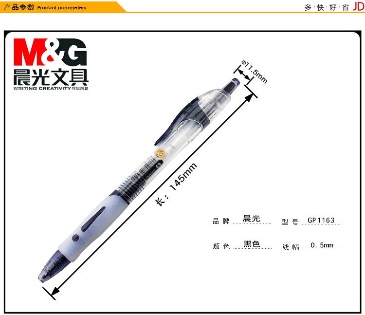 • 商品名稱:晨光(M&G)0.5mm黑色辦公按動子彈頭中性筆簽字筆水筆 12支/盒GP1163