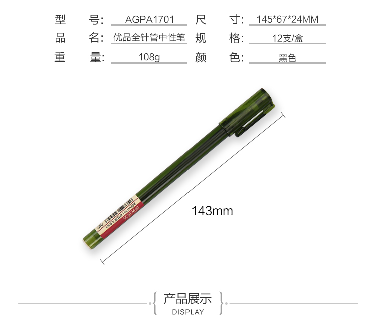 • 商品名稱:晨光(M&G)優(yōu)品系列0.5mm黑色全針管中性筆簽字筆水筆 12支/盒AGPA1701