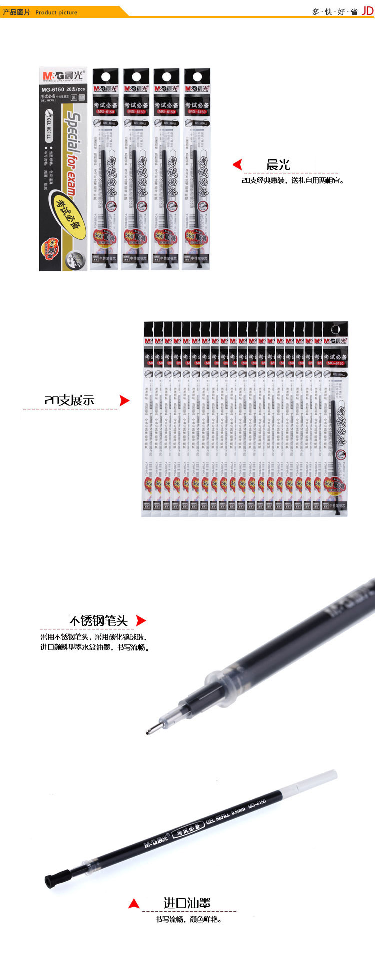 • 商品名稱:晨光(M&G)0.5mm黑色全針管學生考試中性筆簽字筆水筆替芯筆芯 20支/盒MG6150