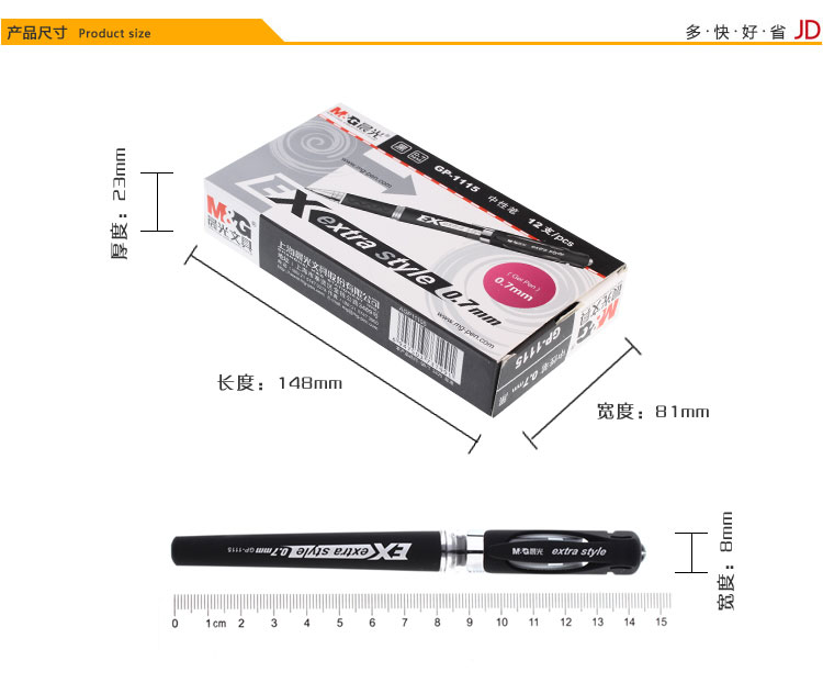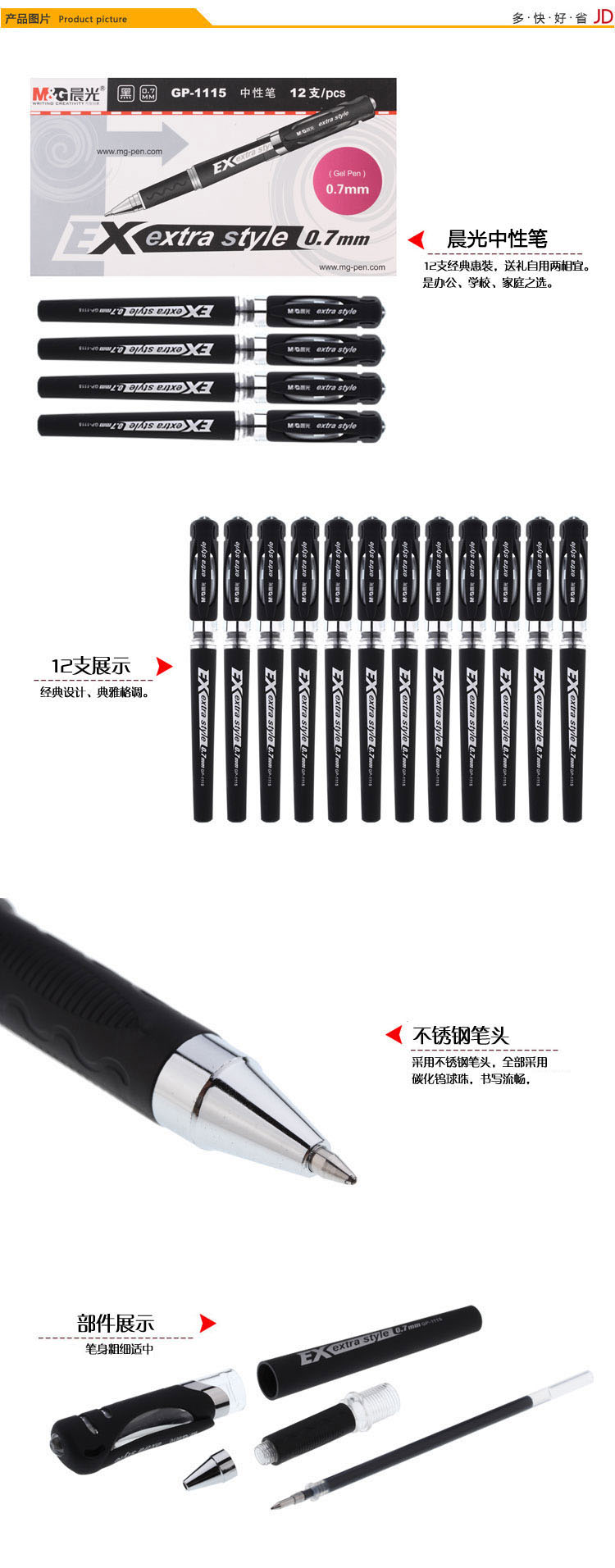 • 商品名稱:晨光(M&G)0.7mm黑色經(jīng)典子彈頭中性筆簽字筆水筆 12支/盒GP1115