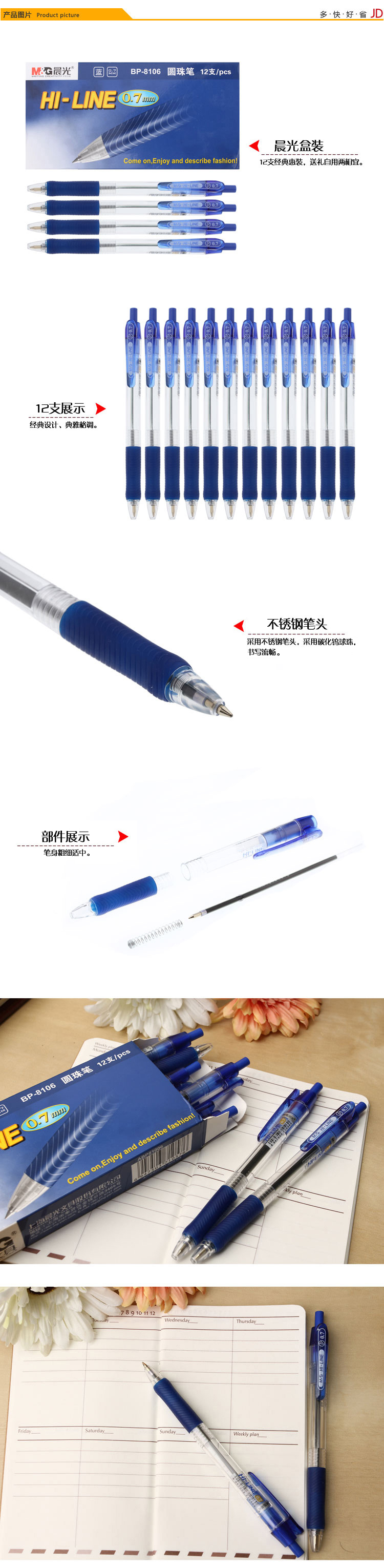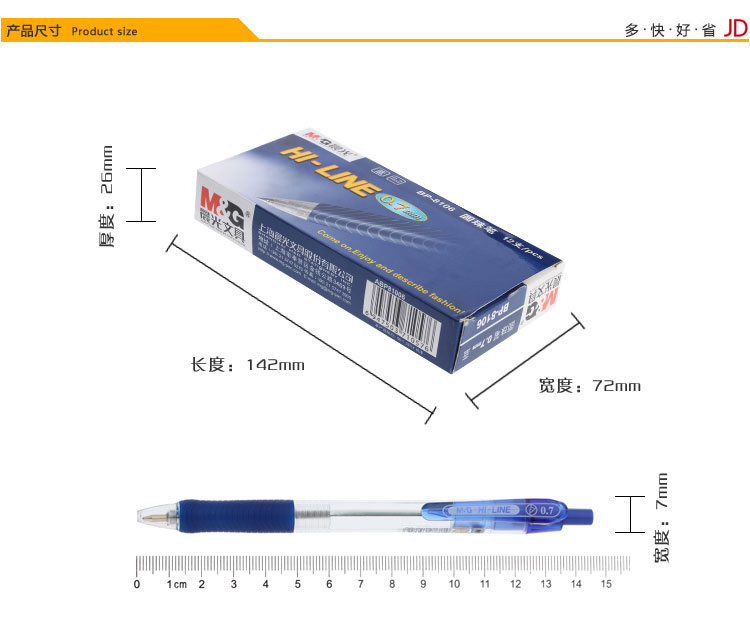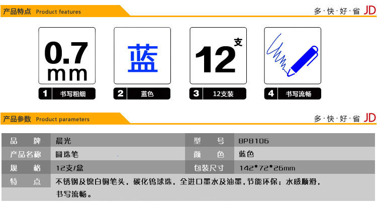 • 商品名稱:晨光(M&G)0.7mm藍(lán)色子彈頭按動圓珠筆中油筆原子筆 12支/盒BP8106