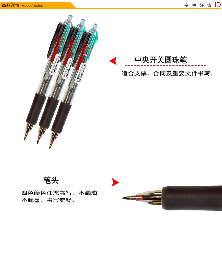 • 晨光(M&G)0.7mm四色子彈頭按動(dòng)圓珠筆多功能中油筆原子筆 12支/盒BP8030