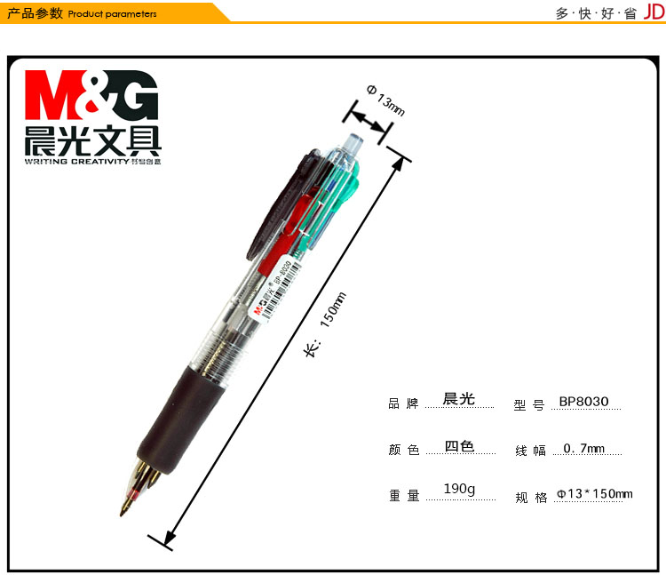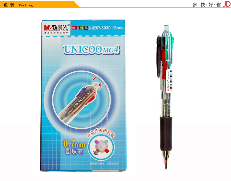 • 商品名稱:晨光(M&G)0.7mm四色子彈頭按動(dòng)圓珠筆多功能中油筆原子筆 12支/盒BP8030
