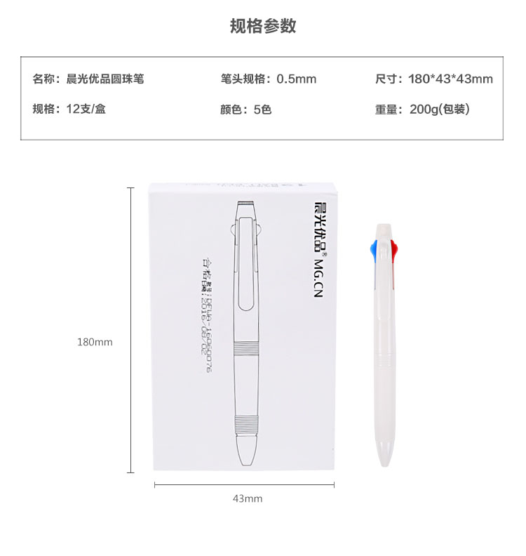 • 商品名稱:晨光(M&G)優(yōu)品系列0.5mm五色按動子彈頭圓珠筆中油筆原子筆 12支/盒ABP80504