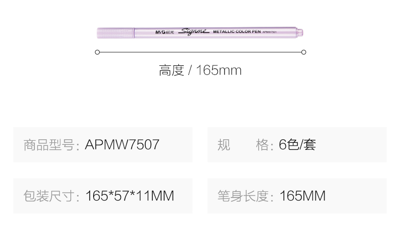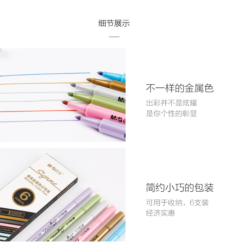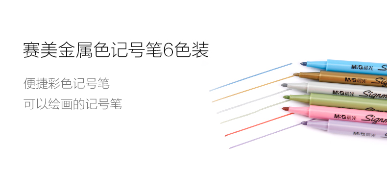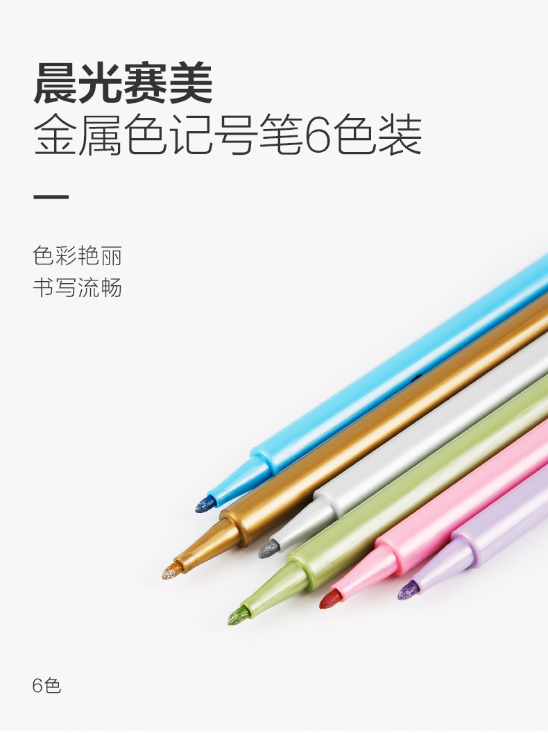 • 商品名稱:晨光(M&G)賽美6種金屬色記號筆手工賀卡筆6支/盒APMW7507