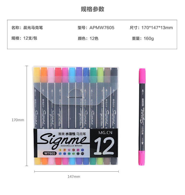 • 商品名稱:晨光(M&G)專業(yè)水溶性雙頭馬克筆 12色/盒APMW7605