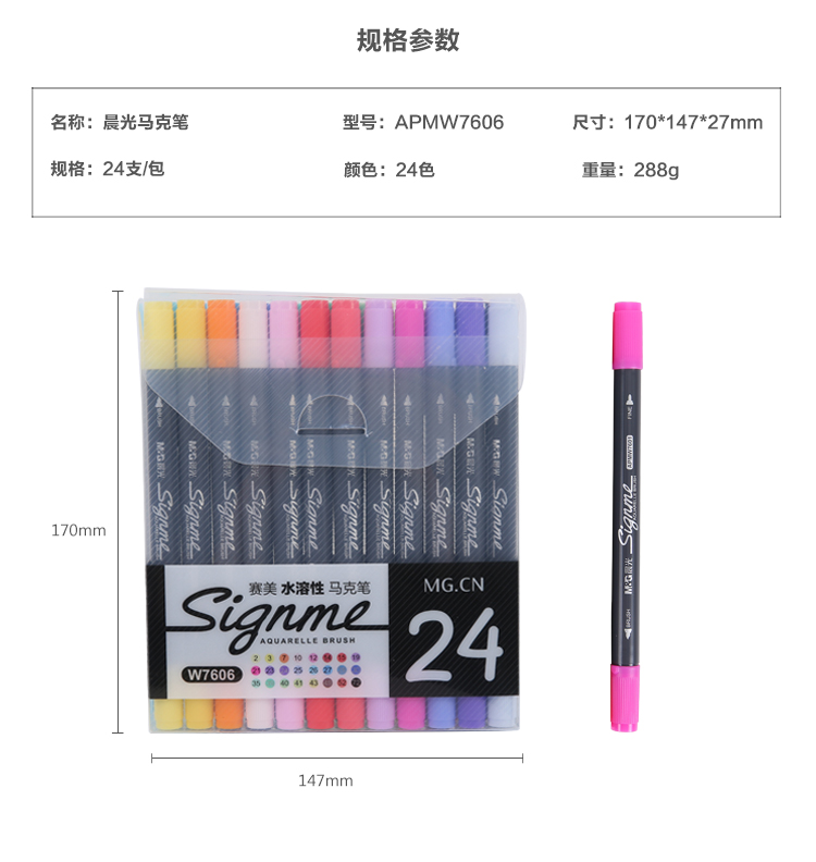 • 商品名稱:晨光(M&G)專業(yè)水溶性雙頭彩色馬克筆記號筆標記筆 24色/盒APMW7606