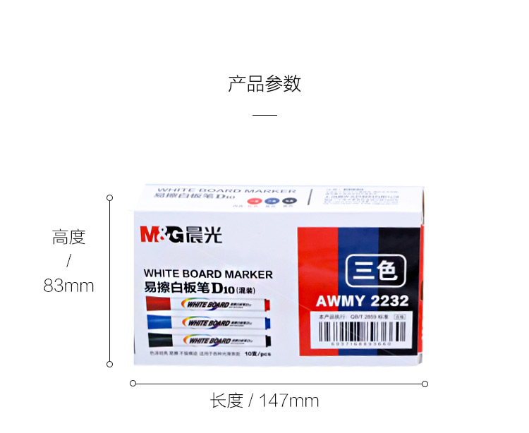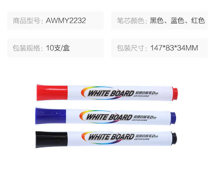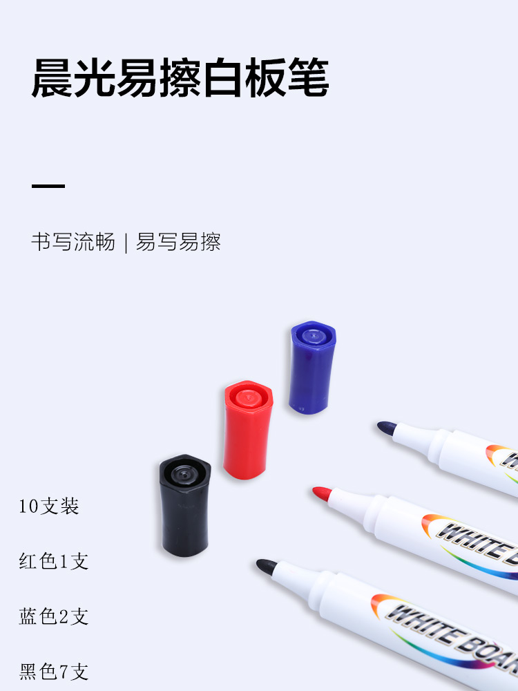 • 商品名稱:晨光(M&G)單頭白板筆可擦易擦辦公會(huì)議筆混裝(7黑+2藍(lán)+1紅) 10支/盒AWMY2232