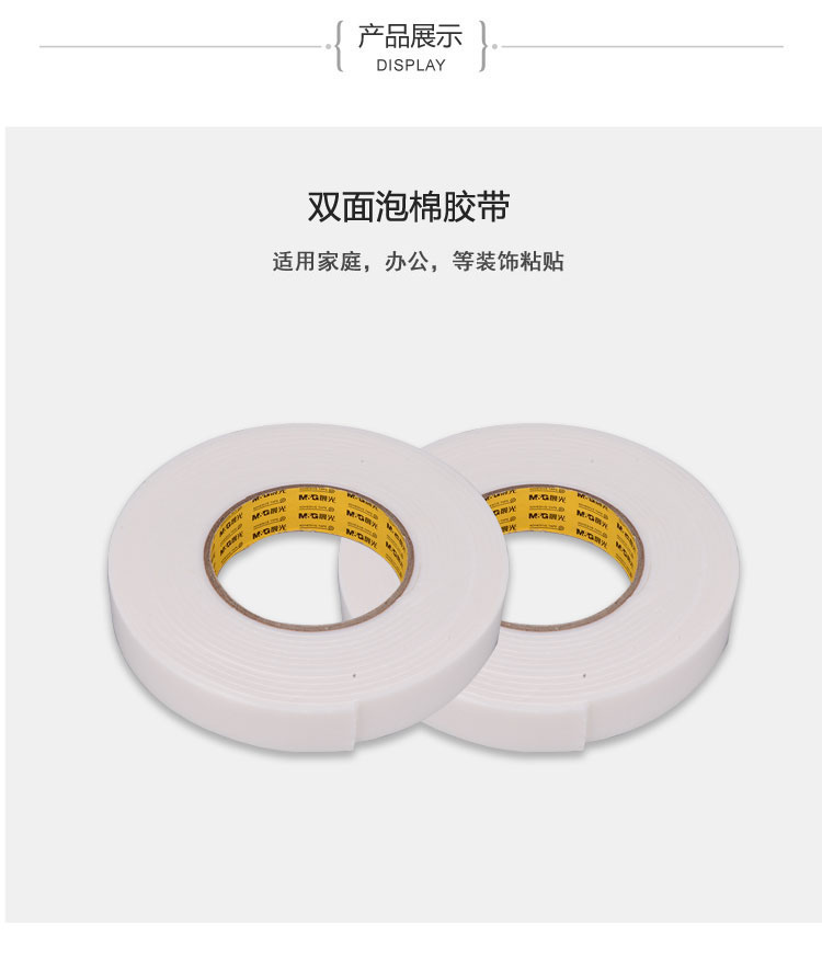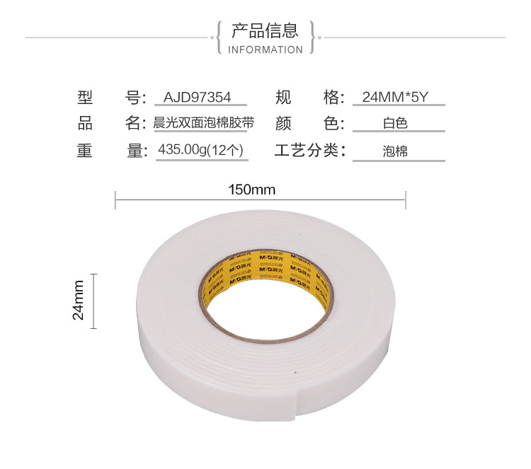 • 商品名稱:晨光(M&G)24mm*5y雙面泡棉膠泡沫膠帶4.57m/卷 12卷裝AJD97354