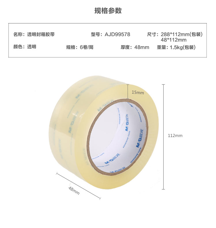 • 商品名稱:晨光(M&G)48mm*100y高透明封箱打包膠帶91.4m/卷 6卷裝AJD99578