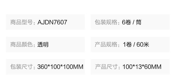 • 商品名稱:晨光(M&G)60mm*60m(50um)透明封箱打包膠帶 6卷/筒AJDN7607