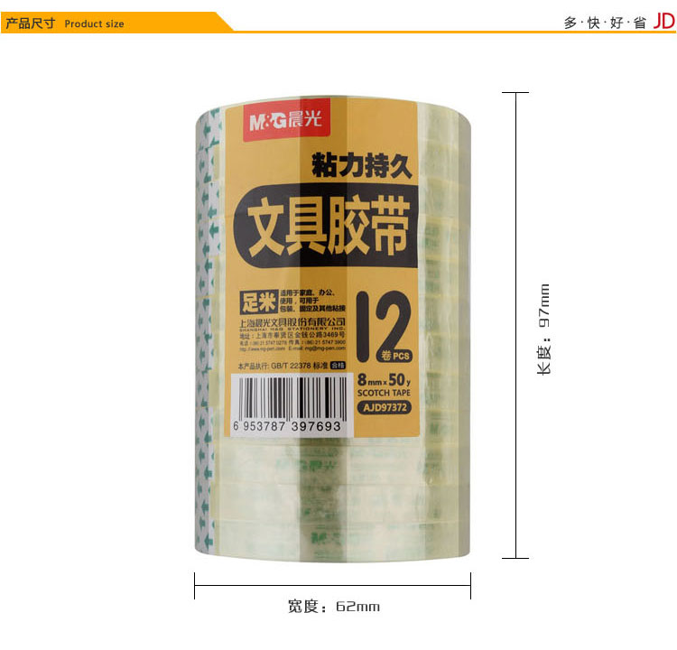 • 商品名稱:晨光(M&G)8mm*50y高透易撕便攜小膠帶45.7m/卷 12卷裝AJD97372