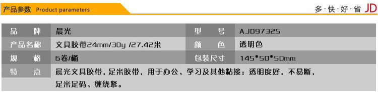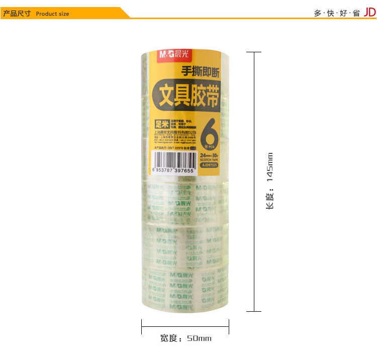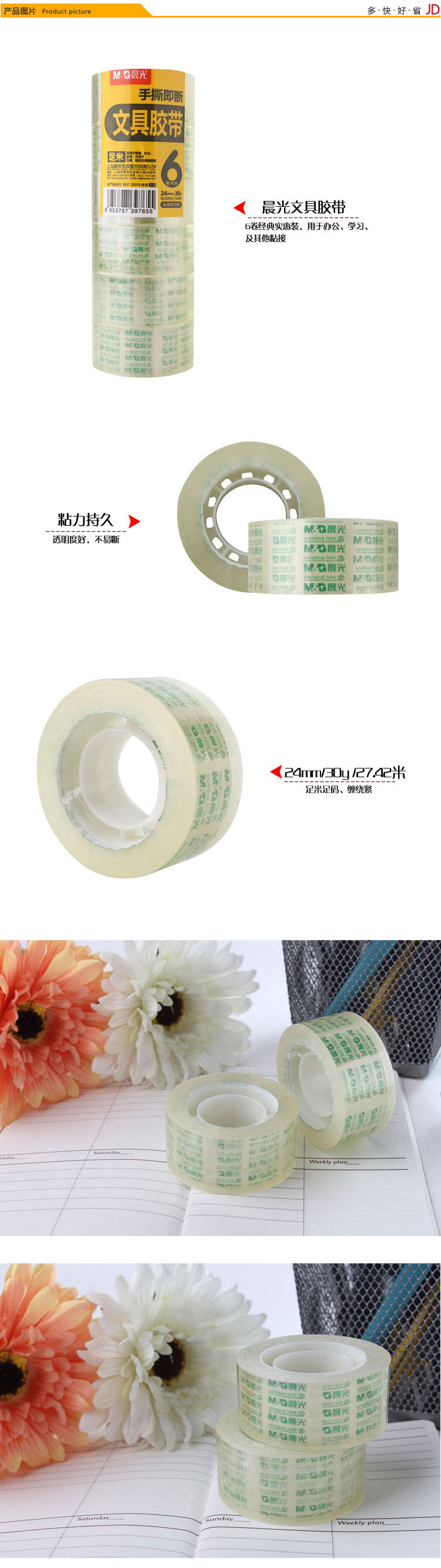 • 商品名稱:晨光(M&G)24mm*30y高透易撕便攜小膠帶27.42m/卷 6卷裝AJD97325