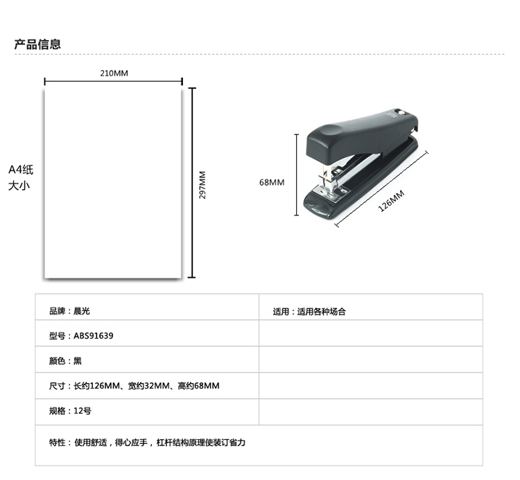 • 商品名稱:晨光(M&G)黑色省力型12號(hào)訂書機(jī)訂書器 單個(gè)裝ABS91639