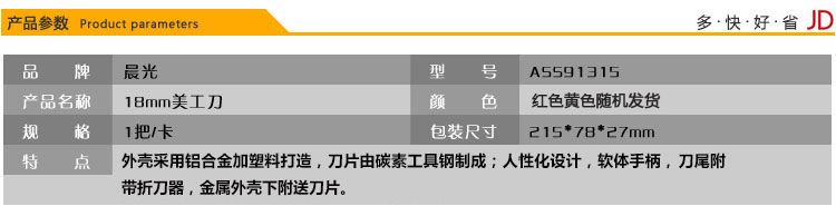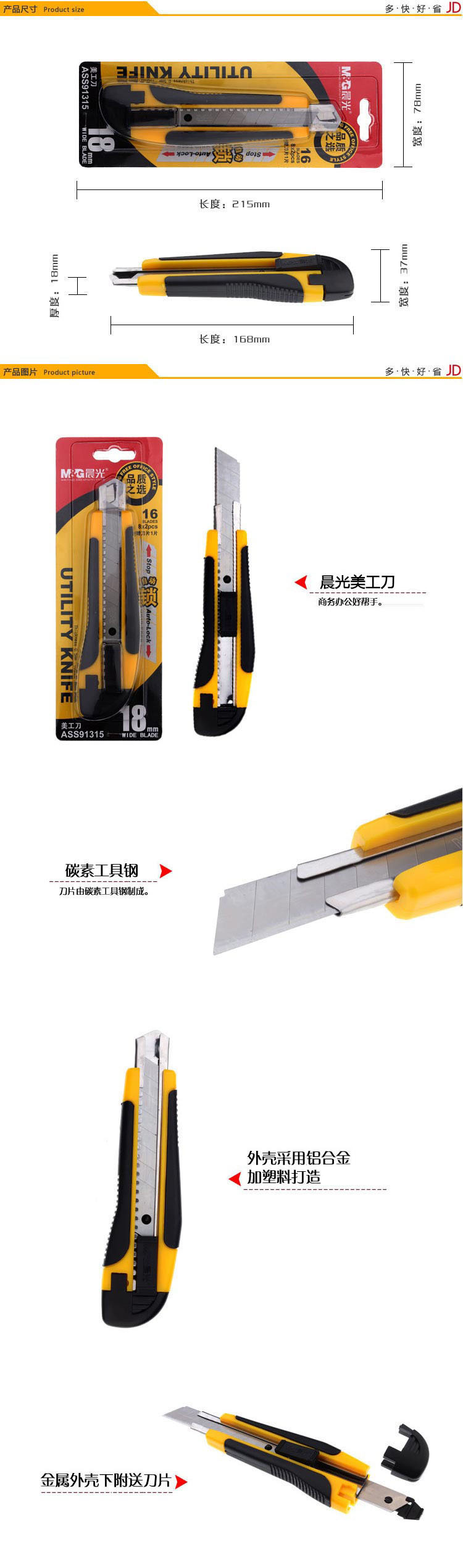 • 商品名稱:晨光(M&G)18mm自動鎖大號美工刀裁紙刀(內(nèi)含2個刀片) 單個裝顏色隨機SS91315