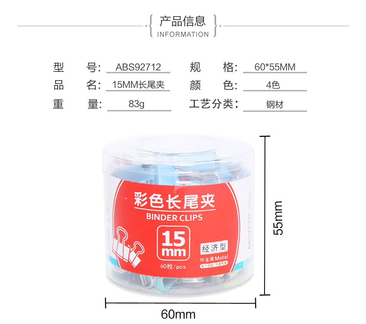 • 商品名稱:晨光(M&G)15mm彩色長(zhǎng)尾夾燕尾夾金夾屬票夾 60個(gè)裝ABS92712
