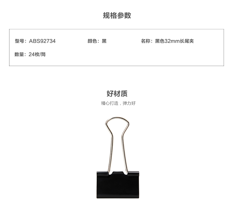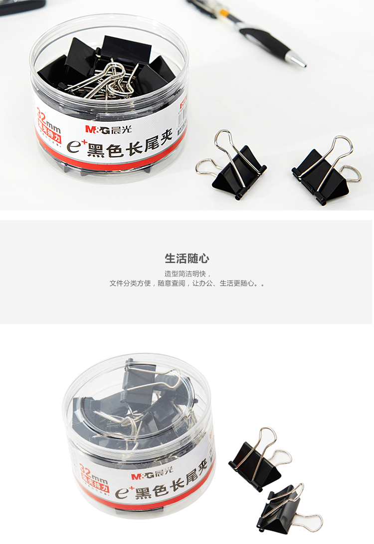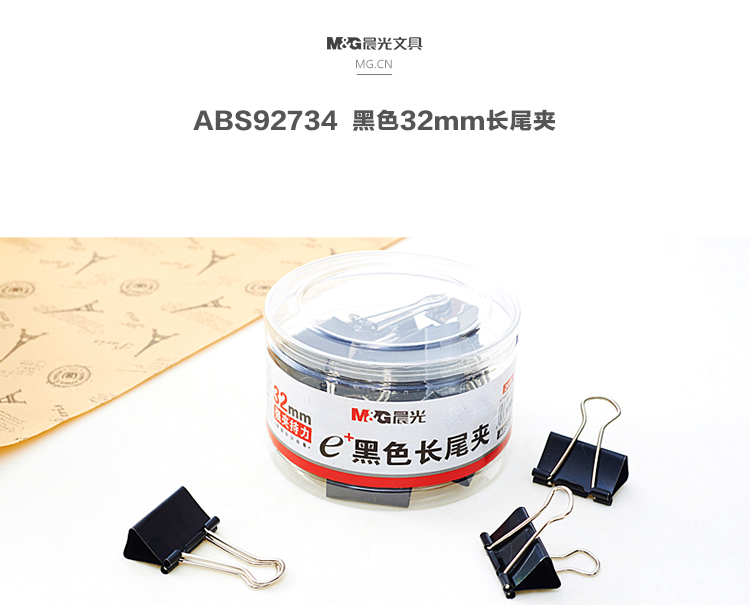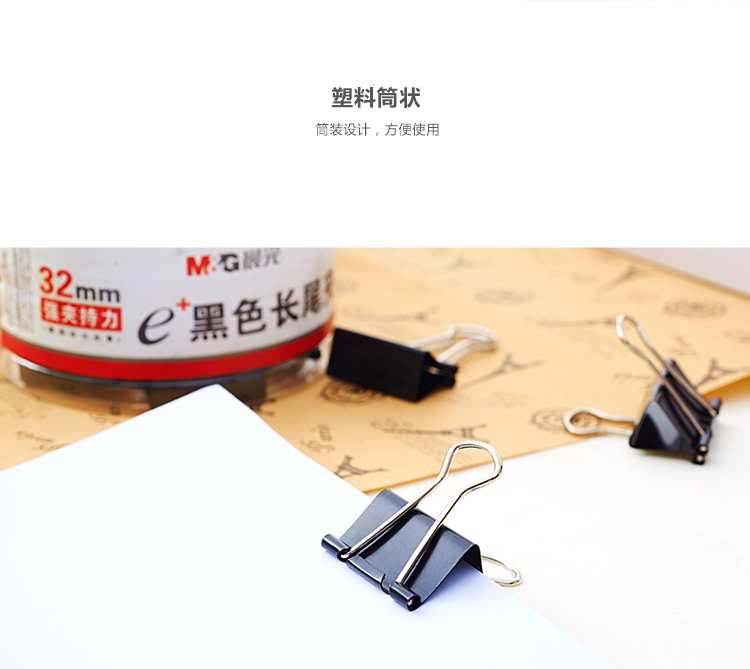 • 商品名稱:晨光(M&G)Eplus系列32mm黑色長尾夾燕尾夾票據(jù)夾 24只/罐ABS92734