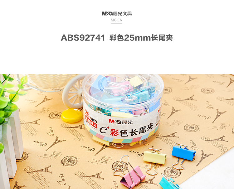 • 商品名稱:晨光(M&G)Eplus系列25mm彩色長尾夾燕尾夾票據(jù)夾 48只/罐ABS92741