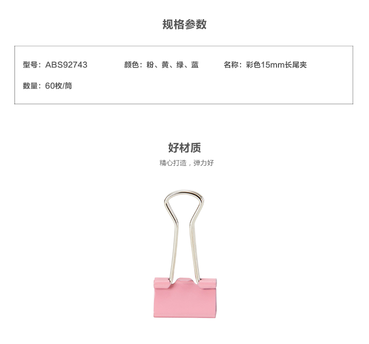 • 商品名稱:晨光(M&G)Eplus系列15mm彩色長(zhǎng)尾夾燕尾夾票據(jù)夾 60只/罐ABS92743