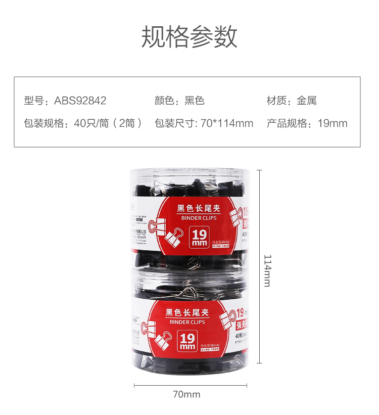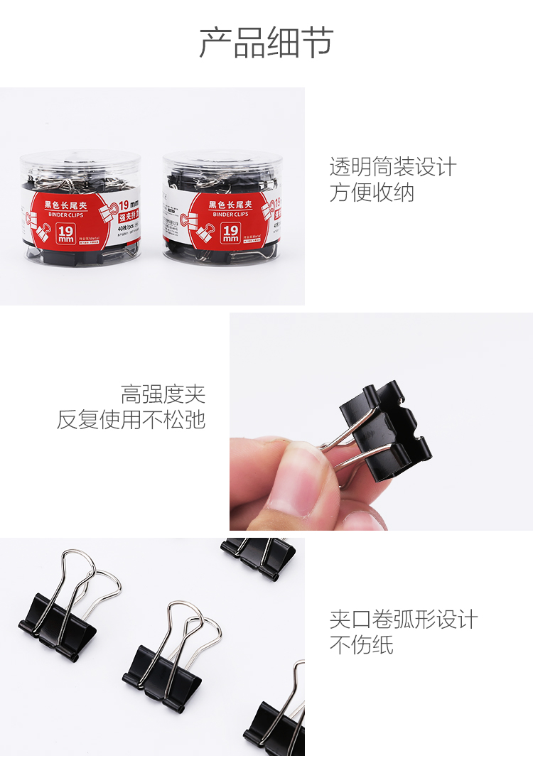 • 商品名稱:晨光(M&G)19mm黑色長尾夾燕尾夾票據(jù)夾 80只/盒ABS92842