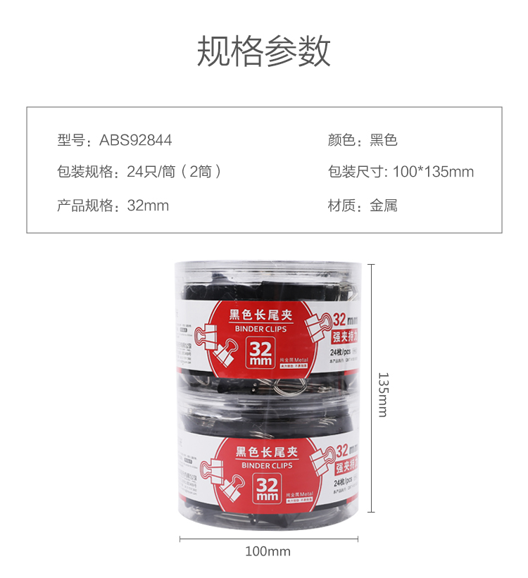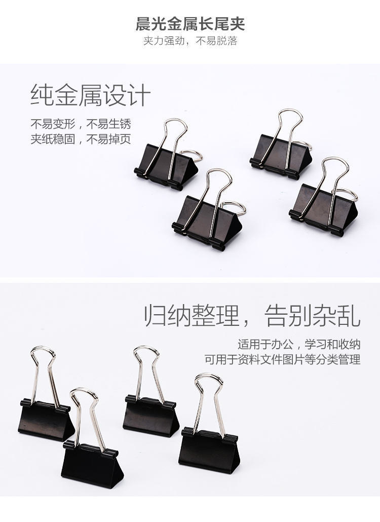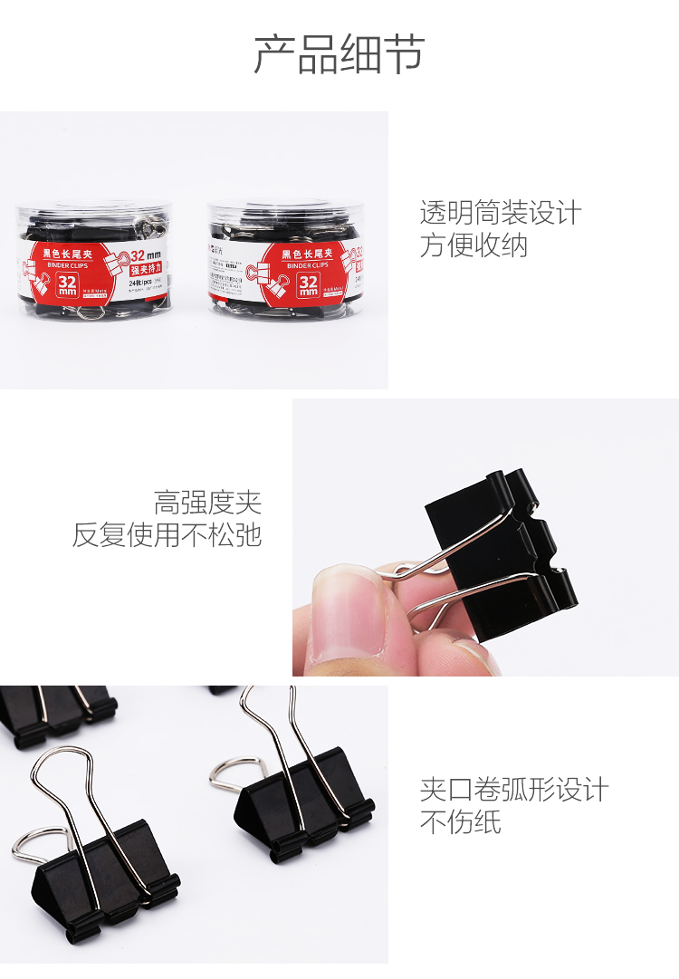 • 商品名稱:晨光(M&G)32mm黑色長尾夾燕尾夾票據(jù)夾 48只/盒ABS92844