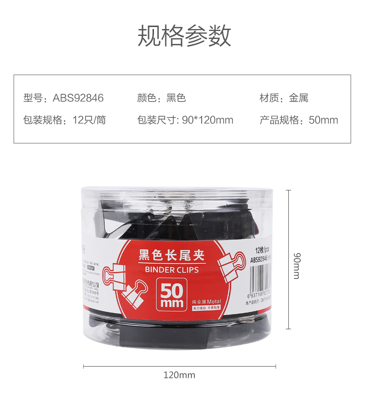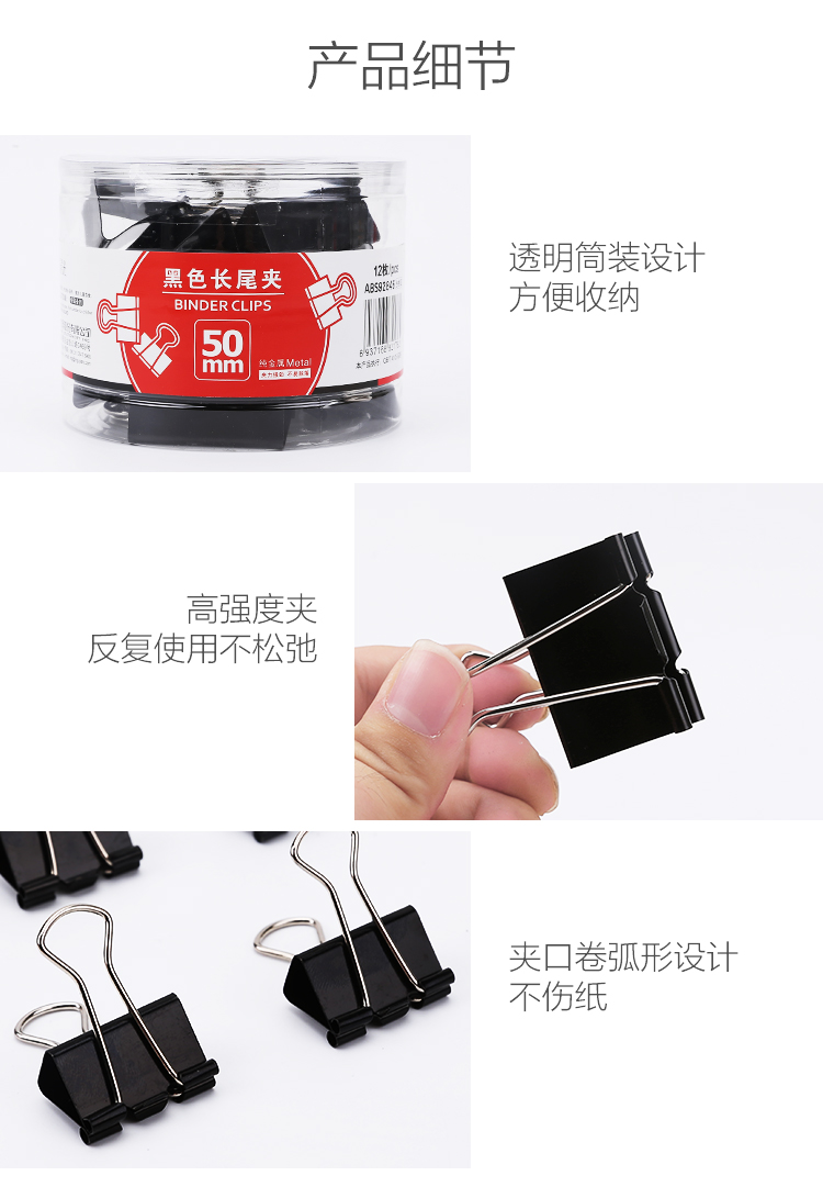 • 商品名稱:晨光(M&G)50mm黑色長尾夾燕尾夾票據(jù)夾 12只裝ABS92846