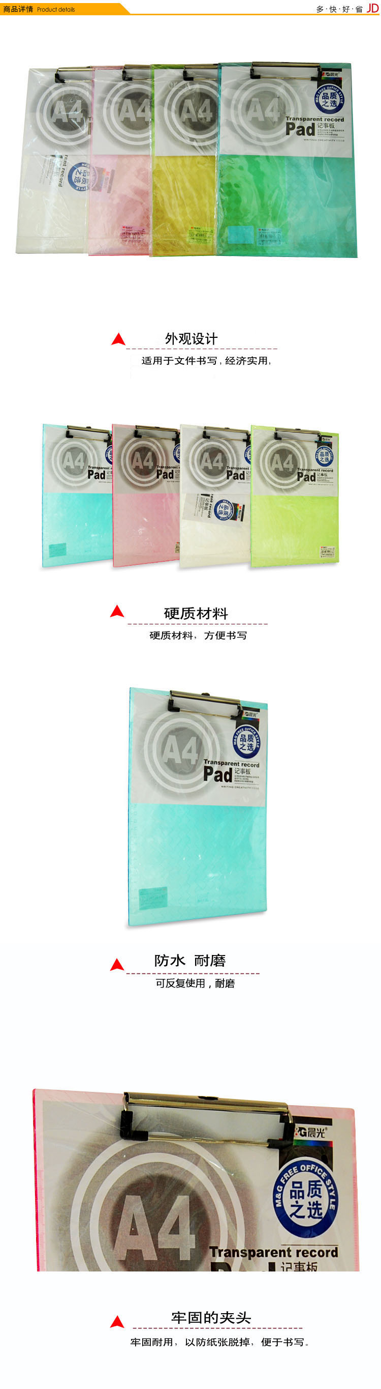 • 商品名稱:晨光(M&G)A4菱紋刻度尺記事板夾文件夾顏色隨機(jī) 單個(gè)裝ADM94512